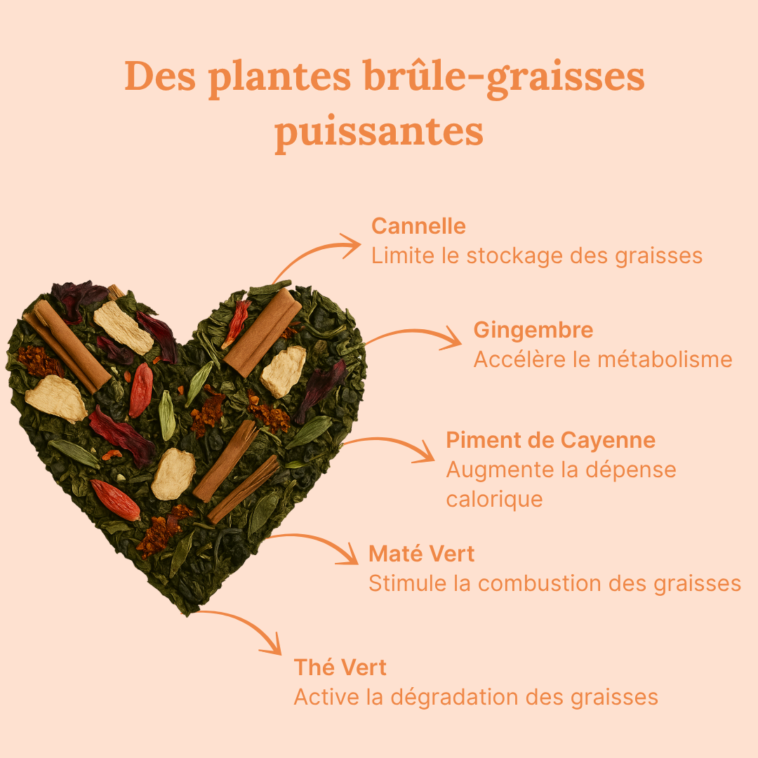 ⚡ Tisane Boost Énergie → Apporte de l’énergie pour rester actif et brûler plus de calories.