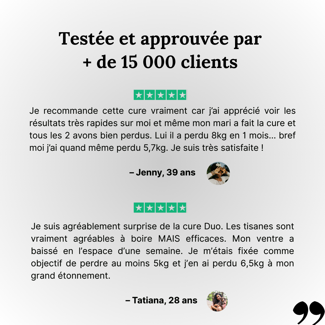 *Perte de poids constatée : jusqu'à 5kg en 15 jours
